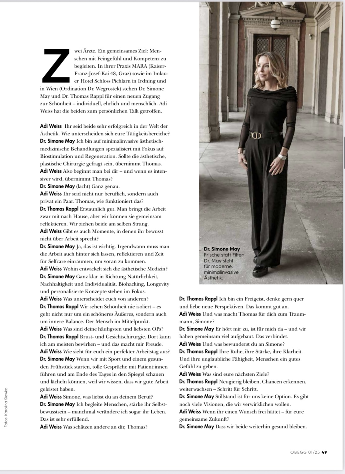 Im exklusiven Interview mit Adi Weiss im aktuellen OBEGG Magazin sprechen sie über Vertrauen, Teamgeist, Visionen und den Mut, neue Wege in der Schönheitsmedizin zu gehen.